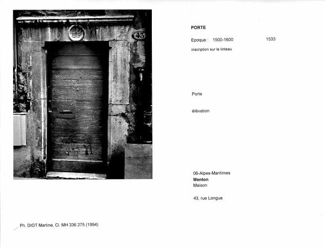 Provence-Alpes-Côte d'Azur ; Alpes-Maritimes (06) ; Menton ; 43-53 rue Longue ; 29-31 quai Bonaparte
