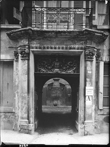 Façades et toitures sur rues et sur cours ; escalier, sa rampe et sa cage décorée en trompe-l'oeil ; pièce à l'entresol ayant conservé un plafond à la française décoré de rinceaux sur fond d'or (cad. AE 214) : inscription par arrêté du 13 septembre 1988