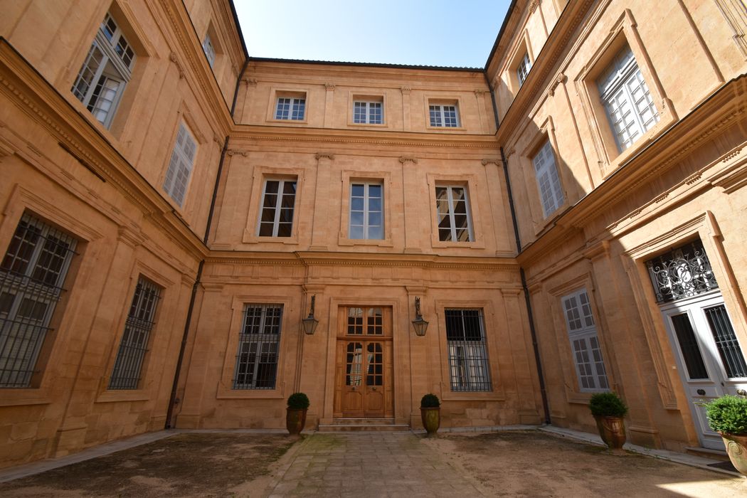 L'hôtel, à l'exclusion des parties classées : inscription par arrêté du 25 mars 1929 - Les façades et les toitures sur rue et sur cour, y compris le portail d'entrée sur rue, le plafond peint à médaillon circulaire du grand salon, et le plafond à poutres peintes d'une pièce au premier étage (cad. AH 12) : classement par arrêté du 1er décembre 1980 - L'appartement de l'aile ouest au premier étage donnant au sud et à l'ouest, en totalité, comprenant l'ensemble des pièces numérotées de 1 à 10 avec leur décor ainsi que les pièces entresolées sur trois niveaux n°s 11, 12 et 13 du plan Botton, et les escaliers qui les desservent (cad. AH 12, lot 60 (anciennement 14) ) : classement par arrêté du 24 août 2004