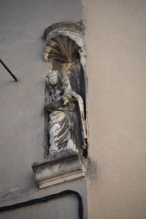 La niche d'angle avec statue de la Vierge : inscription par arrêté du 5 juillet 1927