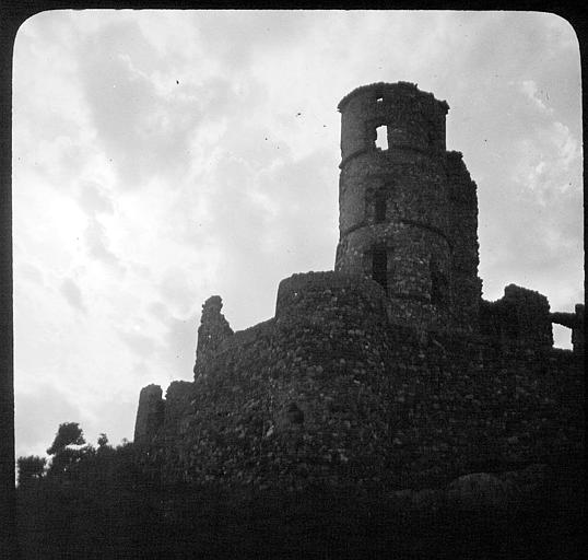 Château féodal de plan quadrangulaire flanqué de quatre tours et protégé par trois enceintes successives, construit au Moyen-Age, démantelé en 1565, peut-être restauré au 17e siècle.