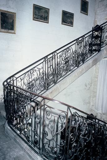Façade et rampe d'escalier en fer forgé : inscription par arrêté du 23 novembre 1949