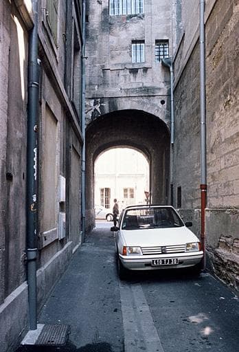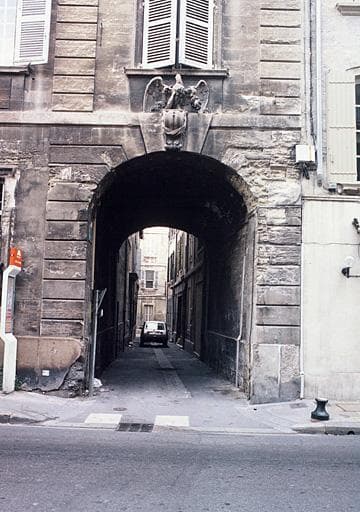Façade sur rue et voûte du passage : inscription par arrêté du 4 octobre 1932