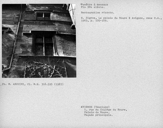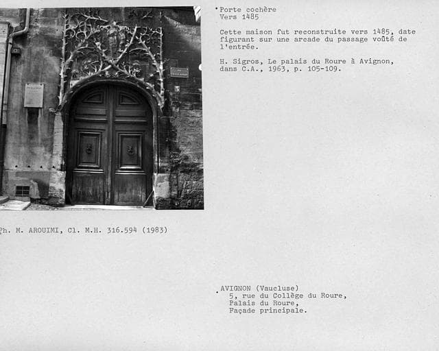 Palais de Roure : classement par arrêté du 19 novembre 1941