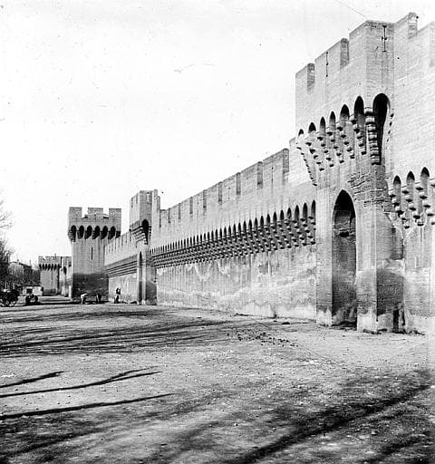 Les remparts, dans leur intégralité : classement par arrêté du 23 février 1906 - La tour, dite du Châtelet, commandant l'accès du Pont-Saint-Bénézet : classement par arrêté du 22 septembre 1914 - La tour n° 6 faisant partie des remparts : classement par arrêté du 18 juin 1915 - La tour n° 93 faisant partie des remparts : classement par arrêté du 11 septembre 1915 - Le terre-plein longeant les remparts à l'extérieur, limité par la bordure du trottoir à l'exclusion de la chaussée, de la Porte Saint-Roch à la Porte Neuve-Saint-Lazare d'une part, de la Porte Saint-Michel à la brèche Saint-Charles d'autre part : classement par arrêté du 27 janvier 1933 - Les terrains situé aux n° 50, 52, 54, 56 du quai de la Ligne : classement par arrêté du 13 septembre 1937