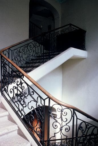 Rampe en fer forgé de l'escalier : inscription par arrêté du 28 octobre 1949
