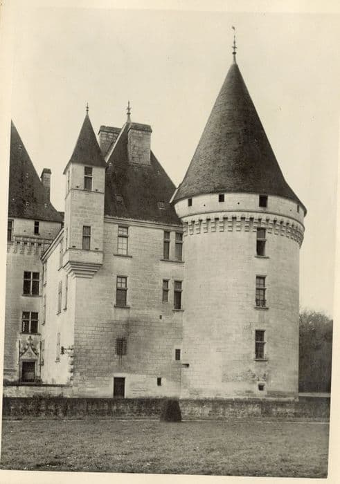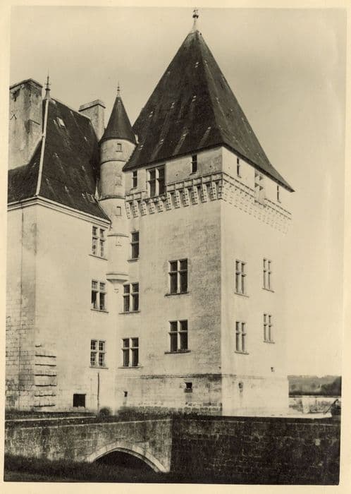 Un repaire existait au 15e siècle, dont des vestiges ont été découverts. Le château actuel fut commencé en 1497. Il aurait été terminé en 1604 par Henri de Saint-Astier, protestant qui, en 1592, fut témoin de sa prise par les catholiques. En 1652, les frondeurs investirent le château. A la Révolution, le château est réservé pour être démoli, mais seules les murailles de la cour fortifiée sont rasées, et les fossés comblés. Le château présente un long corps de logis rectangulaire, flanqué de deux grosses tours rondes et d'une tour carrée contenant un escalier monumental. Une échauguette agrémente l'angle sud-est, et une tourelle contenant l'escalier à vis menant aux combles prolonge l'escalier carré. La demeure a conservé son appareil défensif : tours à mâchicoulis, fossés, pont-levis, cour fortifiée. L'ensemble à trois étages est édifié sur des caves voûtées. L'escalier semble être le prototype des escaliers monumentaux à la française qui se développeront au 17e siècle. La salle des gardes est couverte d'une voûte composée d'une colonne centrale d'où s'épanouissent quatre nervures qui retombent dans les angles. Ces nervures, elles-mêmes réunies par quatre liernes curvilignes, évoquent les voûtes compliquées des églises de la fin de l'époque gothique.