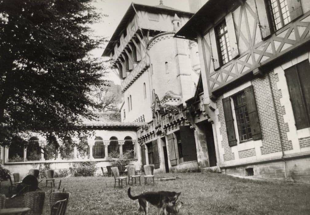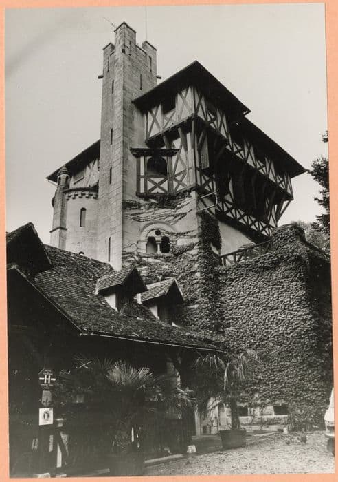 Château construit à partir de 1880, conçu par Mounet-sully, célèbre acteur de l'époque 1900. De par la personnalité de son propriétaire, ce fut le lieu de rencontre des plus grands personnages du monde du théâtre et des arts, ainsi que de divers prix de Rome de sculpture. Rodin aurait sculpté quelques chapiteaux du cloître et Rostand y aurait travaillé à son Cyrano de Bergerac. £L'édifice est un curieux imbroglio de postiches architecturaux. Une tour carolingienne compliquée d'un petit donjon roman s'élève au sud d'un bâtiment en équerre, comportant, outre une galerie de cloître, une construction de style gothique. A l'intérieur se trouve une petite salle de théâtre où les frères Mounet donnaient quelques représentations privées. Une décoration hétéroclite orne murs et plafonds : niches sculptées, encadrements, moulures, ferronneries aux initiales de l'acteur, mosaïque néo-byzantine, fresques, foisonnent selon un ordre imaginé par l'acteur.