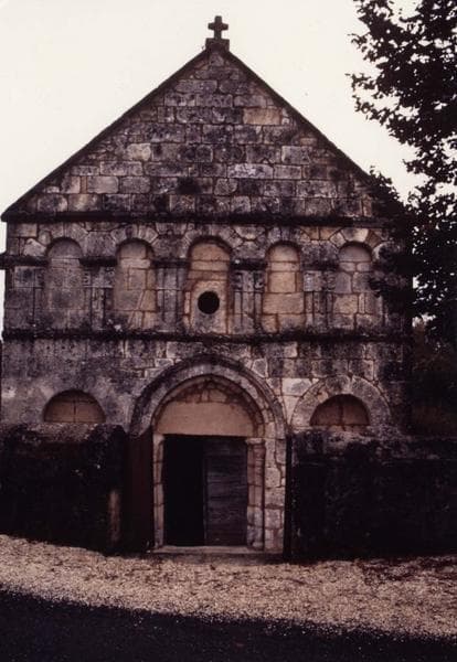 Eglise romane s'ouvrant par un porche à trois arcades surmontées d'un entablement sur lequel reposent cinq arcades. Chaque arcade est soutenue par trois colonnettes à chapiteaux sculptés de personnages et animaux. La nef a été surbaissée depuis la suppression de la voûte primitive, remplacée par une voûte en bois. Clocher sous coupole. Le choeur est orné de quatre gros piliers granit à chapiteaux sculptés.