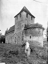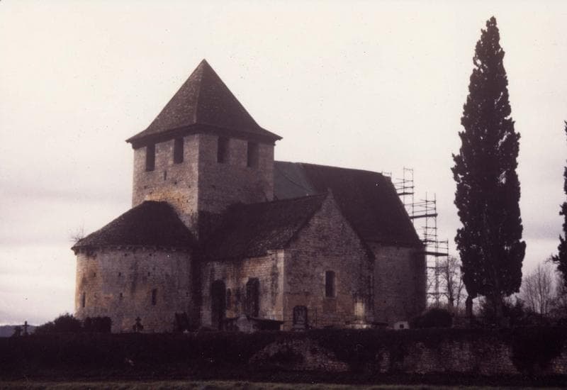 Une inscription conservée dans le mur nord de la nef donne la date de dédicace, 1194, par Adhémar de la Tour, évêque de Périgueux. Nef suivie d'un avant-choeur sous coupole et d'un choeur à abside semi-circulaire. La nef a peut-être été voûtée. Au-dessus des contreforts, la muraille paraît avoir été remontée pour recevoir une corniche sous modillons. Au-dessus de cette corniche, le mur a encore été exhaussé pour recevoir les sablières de la charpente. Le grand arc nord de l'avant-choeur ouvre sur une chapelle rectangulaire voûtée d'un berceau brisé en blocage, pouvant remonter au 13e ou au 14e siècle. Un sacraire y est conservé sous un arc plein cintre orné de petits lobes sculptés et d'une croix. Le grand arc sud ouvrait autrefois sur une chapelle latérale. Les élévations extérieures du sud de l'avant-choeur, révèlent que l'église n'était pas sur plan cruciforme et que la chapelle qui a formé le croisillon sud était une adjonction postérieure. Le clocher carré repose sur l'avant-choeur. Sa partie supérieure, percée de deux baies rectangulaires sur chaque face, a été remontée au 18e siècle.