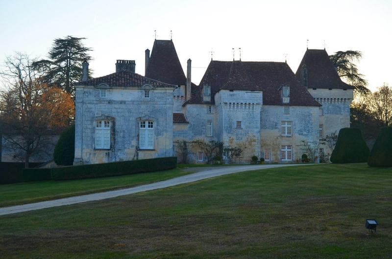 Le château actuel fut rebâti vers la fin du 15e siècle, sur des fondations plus anciennes. La dernière prieure de l'abbaye de Fontaine y naquit. Elle fut tuée et brûlée à la Révolution, et repose dans l'église de Saint-Pardoux. Le corps de logis est flanqué de deux énormes tours à mâchicoulis, et est défendu au nord par une troisième tour désaxée sur la gauche. A l'est, chartreuse du 18e siècle à un étage, soudée à la forteresse en équerre. Des pilastres rejoignent le toit.