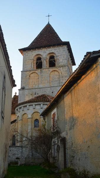 Edifice d'origine romane qui a subi d'importantes modifications au 15e siècle. Il a conservé, de la première période, une abside semi-circulaire avec sa toiture primitive en tuiles pierres posée sur la voûte, et un clocher dont l'étage du beffroi est décoré d'arcatures. Ce clocher de plan carré précède l'abside et renferme une coupole. Toutes les autres parties de l'édifice ont été recouvertes, au 15e siècle, de voûtes d'arêtes.
