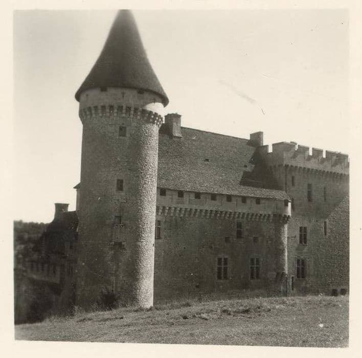 Le château fut une importante forteresse entourée de courtines et d'échauguettes. En 1357, les Anglais s'en emparèrent. Durant les guerres de Religion, il servit de repaire au capitaine Puymartin, chef catholique qui reprit Sarlat aux Calvinistes en 1534. L'accès à la cour intérieure se fait par un châtelet. Les deux corps de logis des 15e et 16e siècles sont soudés par deux tours à mâchicoulis accostées d'une poivrière contenant un escalier à vis de Saint-Gilles. La partie ancienne est terminée par un chemin de ronde avec trous à couleuvrines. Une grande salle conserve un belle cheminée et des tapisseries. Poutres peintes au pochoir. Le cabinet lambrissé qui fait suite est peint en trompe l'oeil de sujets païens et chrétiens. Ces peintures à la colle, traitées comme des fresques, doivent dater du début du 17e siècle.