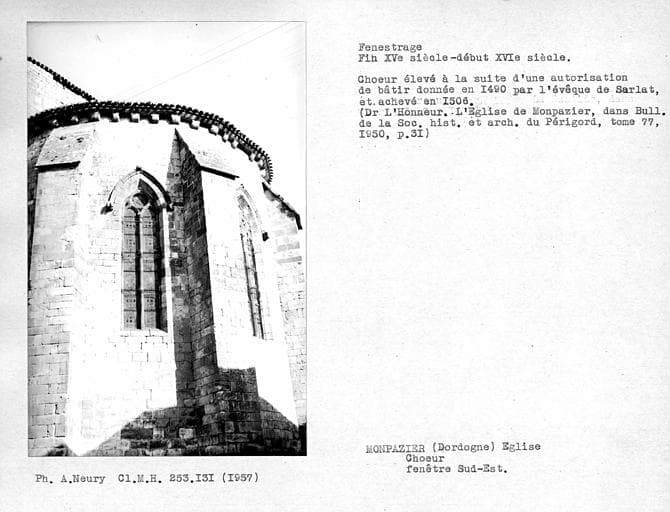 © Monuments historiques, 1992. Cette notice reprend intégralement les termes de l’arrêté de protection au titre des Monuments historiques. Elle répond à l’obligation réglementaire du ministère de la Culture d’établir la liste générale des immeubles protégés (art. R. 621-80 du Code du patrimoine). Elle est donc opposable et fait foi juridiquement. Aucune copie numérique ou papier ne sera fournie par courrier ni courriel. Le dossier de protection complet et l’arrêté sont consultables uniquement sur place, dans la salle de lecture de la Médiathèque du patrimoine et de la photographie (MPP), à Charenton-le-Pont (Val-de-Marne).