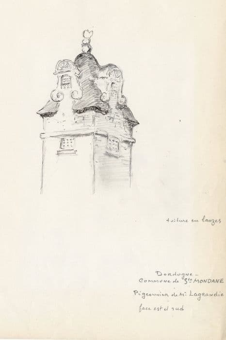 Le pigeonnier a été détruit par effondrement le 22 décembre 1949. Cet édifice était d'un modèle unique en Périgord. Les lucarnes étaient décorées de coquilles et volutes. Un épi en pierre le couronnait.