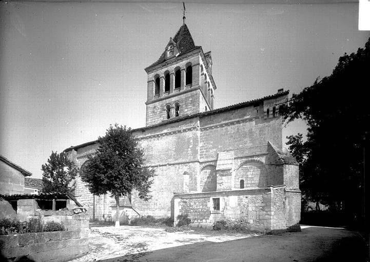 L'édifice appartient au type des églises à coupoles à une seule nef, très répandu en Périgord. Il se compose de trois travées recouvertes de coupoles sur pendentifs et d'un sanctuaire en berceau. La travée précédant le choeur est élargie par deux grands formerets indiquant une amorce de transept. Dans la façade ouest s'ouvre un portail dont les multiples archivoltes retombaient sur des colonnettes monolithes aujourd'hui disparues. Comme dans la plus grande partie des églises de cette époque, les combles ont été surélevés pour servir de refuge aux époques de trouble et des échauguettes à mâchicoulis construites auxd angles, accusent un souci de défense. Le clocher carré qui s'élève sur la dernière travée en avant du choeur est de construction moderne et a sans doute remplacé un clocher plus ancien.