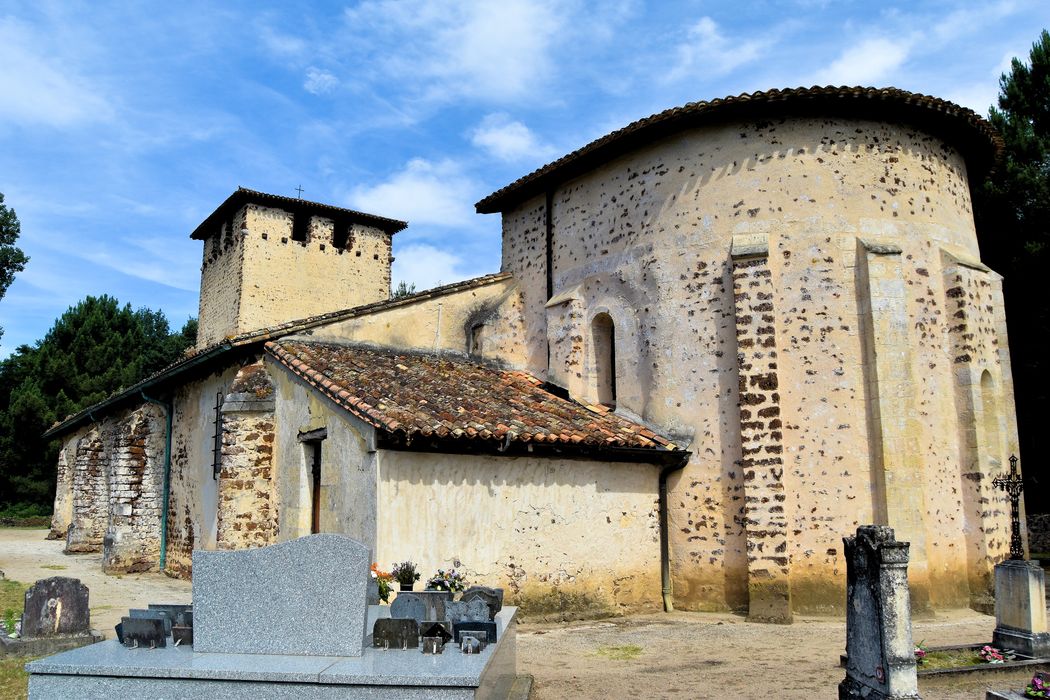 Edifice du 12e siècle, conservant à l'intérieur un intéressant décor sculpté, auquel a été ajouté au 15e siècle un clocher défensif. La sacristie remonte au 17e siècle (1669). A l'origine, elle comportait une nef unique terminée par une abside. Le bas-côté sud date du 16e siècle. L'abside semi-circulaire est voûtée en cul de four. Certaines corbeilles portent des thèmes décoratifs archaïques de type saintongeais, comme des entrelacs, des frises d'oiseaux... D'autres éléments (longues manches de certains personnages) attestent la fin du 12e siècle. Les deux chapiteaux de la fenêtre d'axe de l'abside évoquent symboliquement le Paradis et l'Enfer.