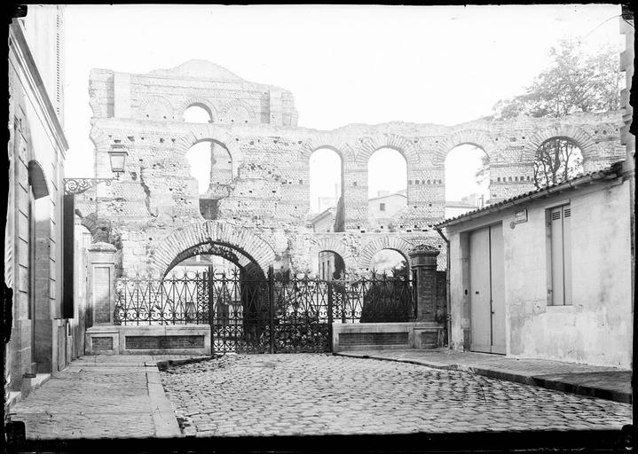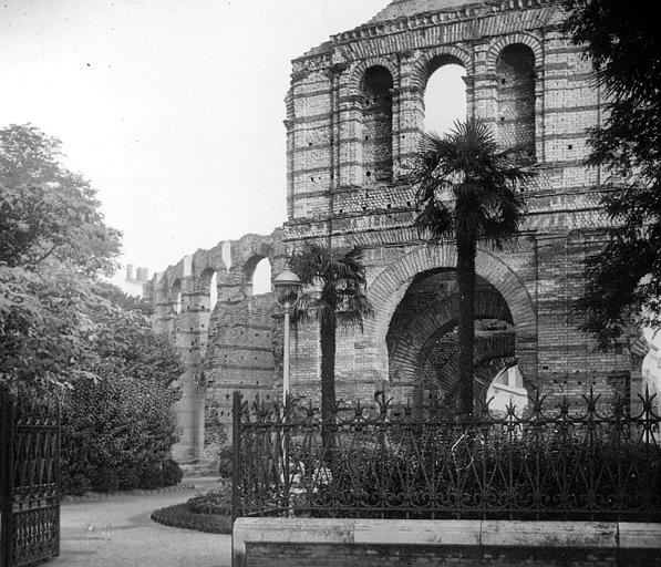 Amphithéâtre édifié entre les années 254 et 268, dont les vestiges ont été englobés au milieu de constructions (arcades, murs...) lors de son lotissement à la fin du 18e siècle. La partie la mieux conservée a été aménagée en square. L'appellation actuelle, qui apparaît en 1367, se rattache soit à l'empereur Gallien, soit à la fille du roi de Tolède, Galiene, épouse légendaire de Charlemagne. Au début du 17e siècle, les deux entrées axiales subsistaient entièrement, ainsi qu'un quart de la cavea. Le reste avait été démoli pour ne pas servir de retranchement à l'ennemi en cas de guerre. En 1793, l'adjudication des ruines provoqua leur démolition, interrompue en 1794. La superstructure est entièrement en blocage parementé en moellons. Cordons de briques. Gradins et planchers devaient sans doute être en bois d'après la présence de nombreux trous de poutres. Une soixantaine d'arcades ouvertes dans le mur extérieur donnaient accès à des galeries et vingt de ces accès se prolongeaient jusqu'à l'arène. Les portes se composaient, en rez-de-chaussée, d'un grand couloir flanqué de deux autres plus étroits, aboutissant à l'arène et sans communication avec les galeries. Les murs latéraux du couloir central se creusaient en contreforts concaves. Les portes étaient surmontées d'une fenêtre encadrée par deux niches. Le tout était couronné par une corniche à modillons. Des pilastres, toscans au rez-de-chaussée, doriques au premier étage, ornaient le tour de l'édifice.