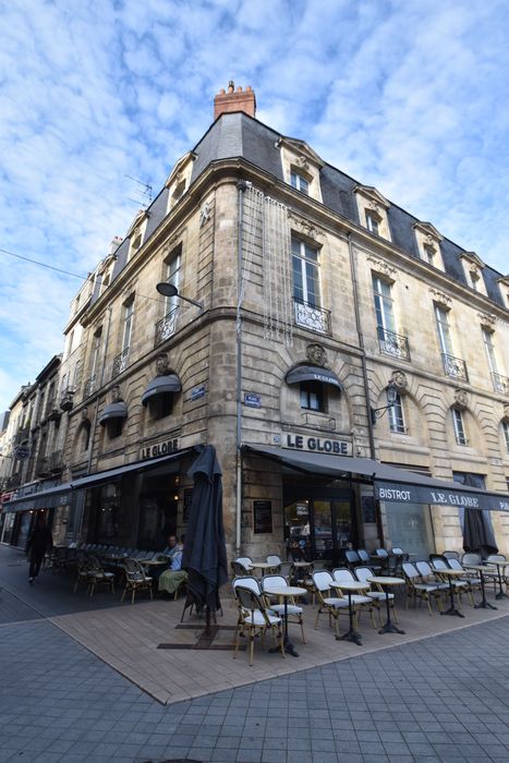 Après la place de la Bourse, celle de Gambetta (ancienne place Dauphine) est l'ensemble architectural urbain le plus important de Bordeaux. Les principales voies y aboutissent. Elle est entourée d'immeubles de la seconde moitié du 18e siècle, bâtis suivant une ordonnance classique. Vers 1745, l'intendant de Tourny, poursuivant son oeuvre d'assainissement et d'embellissement de la ville, ordonna la formation d'une place sur des terrains situés à l'ouest des portes Dauphine et Dijeaux. En 1750, les Jurats contractèrent un emprunt pour fonder et élever les façades des maisons uniformes de la place, composées d'un rez-de-chaussée à arcades portant un étage, un attique et un comble. En 1762, l'architecte fit accepter par l'intendant Boutin un nouveau plan de décor des façades, plus simple que le premier. Il consistait à supprimer les avant-corps prévus et les balustrades, et à surmonter les maisons d'un simple entablement et d'un comble. La place ne fut achevée qu'entre 1770 et 1780, mais le style reste celui de la première moitié du 18e siècle. A chacun des angles de la place rectangulaire s'ouvrent deux artères importantes. L'ordonnance des immeubles comporte une façade de pierre de taille. Au rez-de-chaussée, une arcade régulière avec piédroits à bossages encadrant la porte. Un entresol à petites fenêtres est ménagé dans l'arrondi de l'arcade. Au premier étage se trouvent de grandes portes-fenêtres couronnées de mascarons sculptés et munies de balcons à fer forgé. Quelques immeubles comportent un second étage.