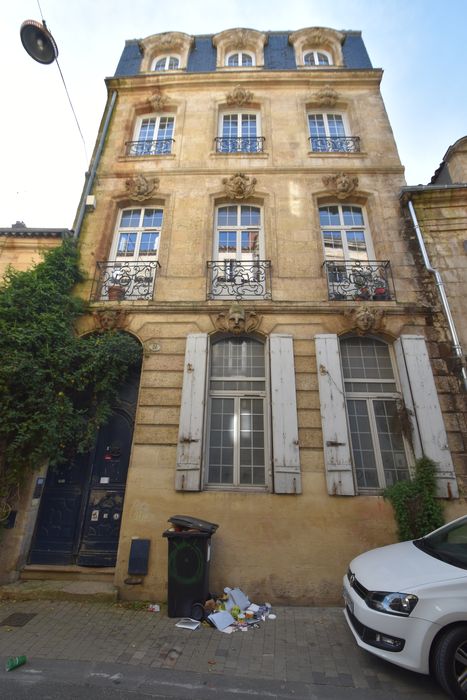 La façade de cet immeuble présente un bel exemple de l'architecture du 18e siècle. Porte en menuiserie avec imposte en fer forgé. Balcons en fer forgé et clés sculptées à toutes les baies.