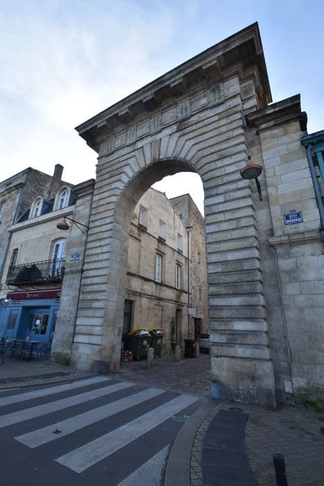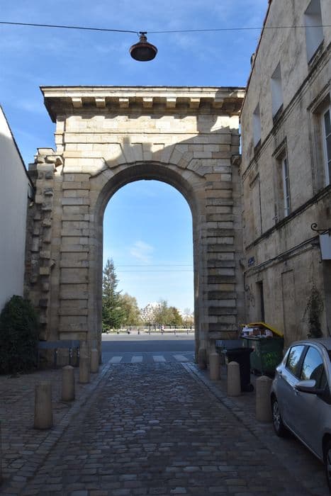 Le 15 juillet 1752, la Jurade de Bordeaux prenait la délibération d'ouvrir dans les remparts du 14e siècle une nouvelle porte, entre celle de Sainte-Croix et celle de la Grace. Elle dut son nom à l'hôtel de la Monnaie qui se trouve au fond de la rue aboutissant à la porte. Cette dernière est formée de deux piédroits en pierre à refends qui encadrent l'ouverture dont l'arc est souligné par de grands claveaux. A la partie supérieure, d'épais modillons soutiennent l'entablement de la corniche. Sur la face interne, les piédroits sont moins larges car ils inscrivent un second arc surbaissé encadrant le premier. Le sommet de la porte est plat, formé d'une table en retrait sur la corniche.