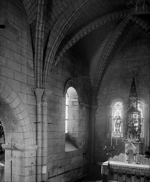 Eglise gothique du 13e siècle, époque à laquelle se rattachent le choeur, l'avant choeur, une chapelle formant bras de transept, le mur latéral sud avec la partie basse du clocher. La façade est de construction plus ancienne. Vers le 18e siècle, l'édifice a subi une importante transformation. Le mur latéral nord a été largement ouvert et une arcade surbaissée a mis en communication ce qui restait de la nef ancienne avec un nouveau bas-côté. Ce bas-côté et la nef sont recouverts d'une voûte en berceau très surbaissé.