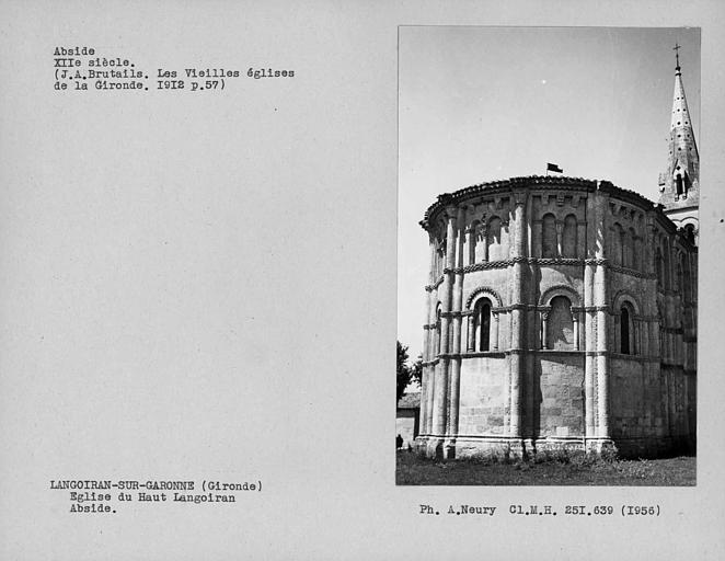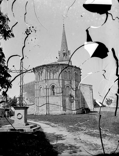 Abside romane sculptée. Au sud, bas-côté du 17e siècle.