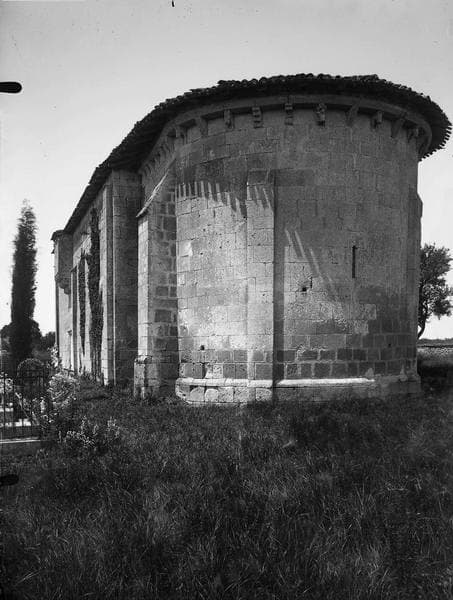 Eglise comprenant une abside, un choeur, une nef plus large. Abside et choeur sont voûtés ; la nef est lambrissée. A l'ouest, porte romane avec colonnettes à chapiteaux historiés. Au-dessus, clocher arcade. Une partie du mur nord a été refaite. Des échauguettes ont été construites sans doute au 16e siècle.