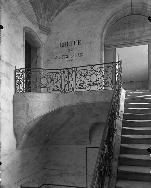 Ruinés en 1577 par les Protestants, les bâtiments du couvent furent réédifiés de 1704 à 1760 sur les dessins de Maurice Murcy. L'intérieur conserve un escalier à deux paliers sur trompes et demi-voûtes appareillées et rampe en fer forgé. La cage est couverte par une voûte ellipsoïdale apparaillée en pierre, avec oculus d'éclairage. La rampe est de section carrée et attribuée à Blaise Charlut.