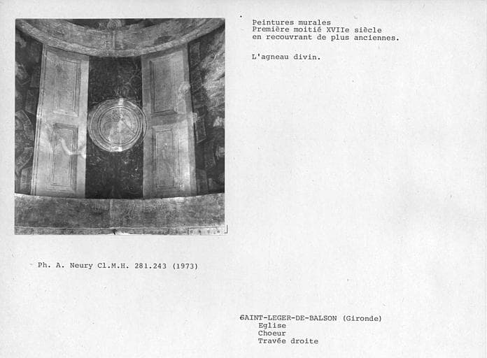© Monuments historiques, 1992. Cette notice reprend intégralement les termes de l’arrêté de protection au titre des Monuments historiques. Elle répond à l’obligation réglementaire du ministère de la Culture d’établir la liste générale des immeubles protégés (art. R. 621-80 du Code du patrimoine). Elle est donc opposable et fait foi juridiquement. Aucune copie numérique ou papier ne sera fournie par courrier ni courriel. Le dossier de protection complet et l’arrêté sont consultables uniquement sur place, dans la salle de lecture de la Médiathèque du patrimoine et de la photographie (MPP), à Charenton-le-Pont (Val-de-Marne).