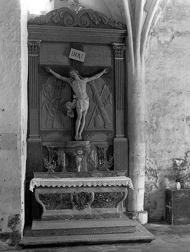 © Monuments historiques, 1992. Cette notice reprend intégralement les termes de l’arrêté de protection au titre des Monuments historiques. Elle répond à l’obligation réglementaire du ministère de la Culture d’établir la liste générale des immeubles protégés (art. R. 621-80 du Code du patrimoine). Elle est donc opposable et fait foi juridiquement. Aucune copie numérique ou papier ne sera fournie par courrier ni courriel. Le dossier de protection complet et l’arrêté sont consultables uniquement sur place, dans la salle de lecture de la Médiathèque du patrimoine et de la photographie (MPP), à Charenton-le-Pont (Val-de-Marne).
