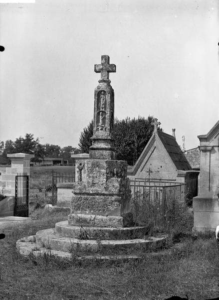 Croix de cimetière du 16e ou du 17e siècle dans laquelle des réminiscences gothiques se mêlent à des formes plus classiques.