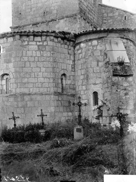 Petite église romane, composée de deux nefs de dates différentes. La plus large, au sud, se termine par une abside à pans coupés précédée d'un avant choeur couvert d'une coupole sur pendentifs.