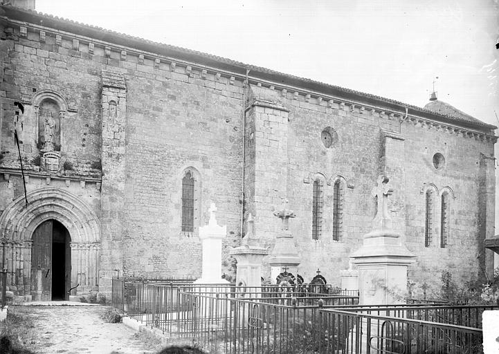 Edifice du 13e siècle, agrandi au 16e par la construction d'une nef latérale. L'église primitive se composait d'une nef rectangulaire à chevet plat orné de longues baies et des trumeaux décorés de statues. La face latérale sud est percée de baies géminées. Dans la première travée s'ouvre le portail surmonté d'une triple archivolte. Les quatre travées de l'église primitive et les trois travées de la nef latérale sont voûtées d'arête. L'intérieur est décoré de peintures de la fin du 16e siècle.