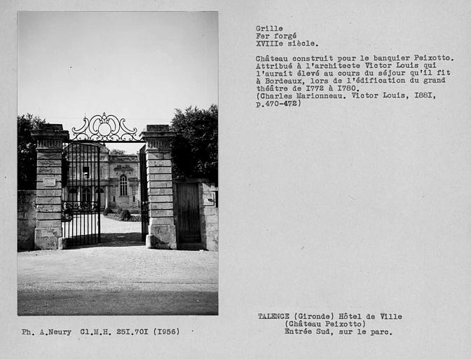 Château du 18e siècle, ayant appartenu au banquier Peixotto. Il ne subsiste de la décoration intérieure que le salon central qui fait saillie en rotonde du côté du parc. Les boiseries, encadrements de baies, la corniche existent encore ainsi que cinq trumeaux peints sur toile avec médaillons et attributs dans le goût Louis XVI. L'escalier en pierre, avec sa rampe en fer forgé subsiste également. Tous les autres locaux ont été transformés pour les besoins de la mairie.