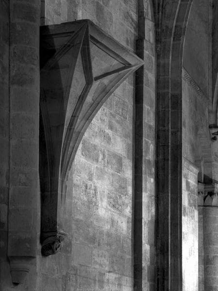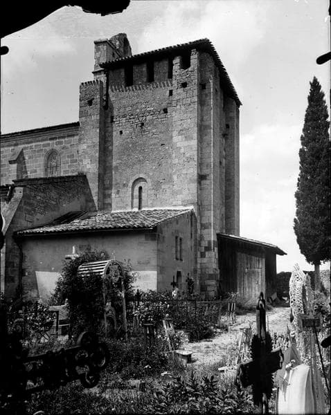 Au-dessus du sanctuaire s'élève une haute tour carrée et crénelée, renforcée aux angles par d'épais contreforts montant du fond jusqu'au sommet. Ce clocher fortifié remonte au 13e siècle. Son mur ouest est ajouré de hautes arcades ogivales. Au nord se trouve la porte de l'escalier. Cet escalier conduit au-dessus du choeur dans une salle de même dimension que celui-ci et qu'abrite une lourde toiture à trois versants dont la charpente actuelle porte sur les merlons du crénelage. Cette salle pouvait au besoin servir de refuge, mais la disposition militaire de l'édifice résulte surtout des dispositions de son couronnement. Entre le cheneau et le parapet crénelé se trouve un petit rebord étroit formant passage en guise de chemin de ronde. Des réduits sont disposés comme échauguettes sur la tête des contreforts ; les trous carrés sur chaque face des contreforts facilitaient la pose des hourds.