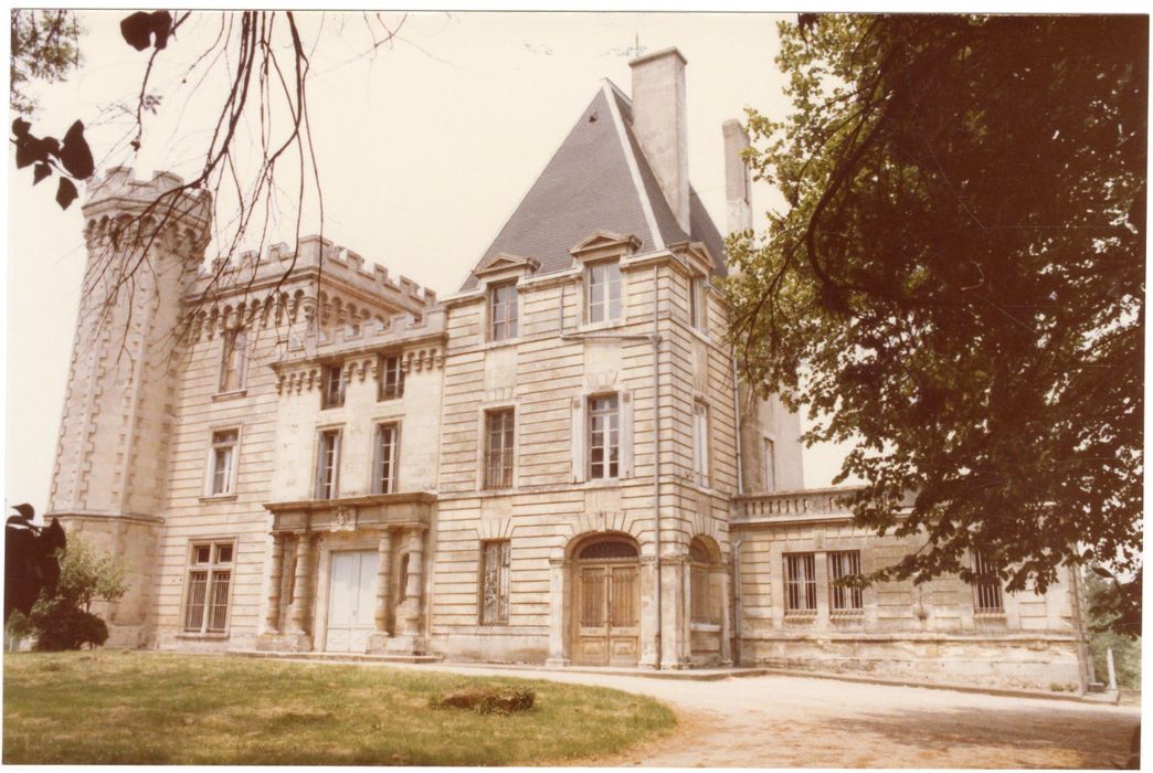 La première forteresse, construite vers 1060 par Guillaume VIII d'Aquitaine, devint avec les Anglais propriété royale. Au cours du 14e siècle, le château devint l'un des trois principaux centres de la seigneurie archiépiscopale. Occupé par les Français, il servit de cadre aux pourparlers de paix en octobre 1453. Après les ravages dus aux guerres de Religion, de grands travaux de reconstruction sont menés et achevés vers 1630. La forteresse est prise par les troupes royales lors de la Fronde et les négociations mettant fin à la guerre s'y déroulèrent en 1653. Les restaurations se prolongèrent jusque vers 1670. En 1781, le cardinal de Rohan entreprit la destruction de l'édifice. Vers 1880, les restes en furent remaniés.£Un pont mène à un bâtiment rectangulaire à pavillon central dont le porche, encadré par deux pilastres, s'ouvre sous un grand arc en anse de panier. A l'intérieur, un escalier en colimaçon mène aux sous-sols voûtés qui conservent des graffiti. Le château est un bâtiment rectangulaire qui comporte un pavillon contre lequel se plaque la partie 19e siècle, crénelée et encadrée de tours. Côté nord, un escalier en fer à cheval provient, semble-t-il, de parties détruites du 17e siècle. Le parc conserve, côté sud, l'enceinte du 17e siècle enfouie sous les décombres, des murs de terrasses, les restes d'une fontaine en rocaille. Les bases des murs de la forteresse affleurent sous les pelouses. La chapelle médiévale, située autrefois dans l'aile sud, a été dégagée.