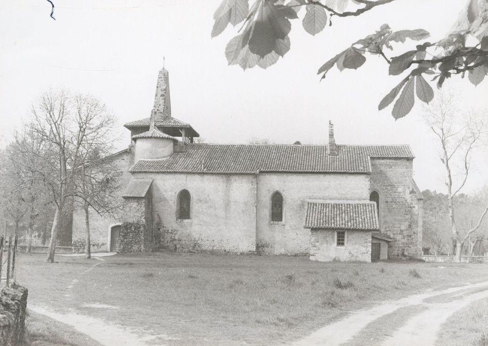La façade ouest est constituée par un clocher mur qui a dû remplacer un premier clocher carré ou rectangulaire. Une tourelle ronde d'escalier s'élève dans l'angle sud-ouest de la nef et du bas-côté. Un avant porche moderne s'élève contre la façade. L'édifice se termine par une abside plate.