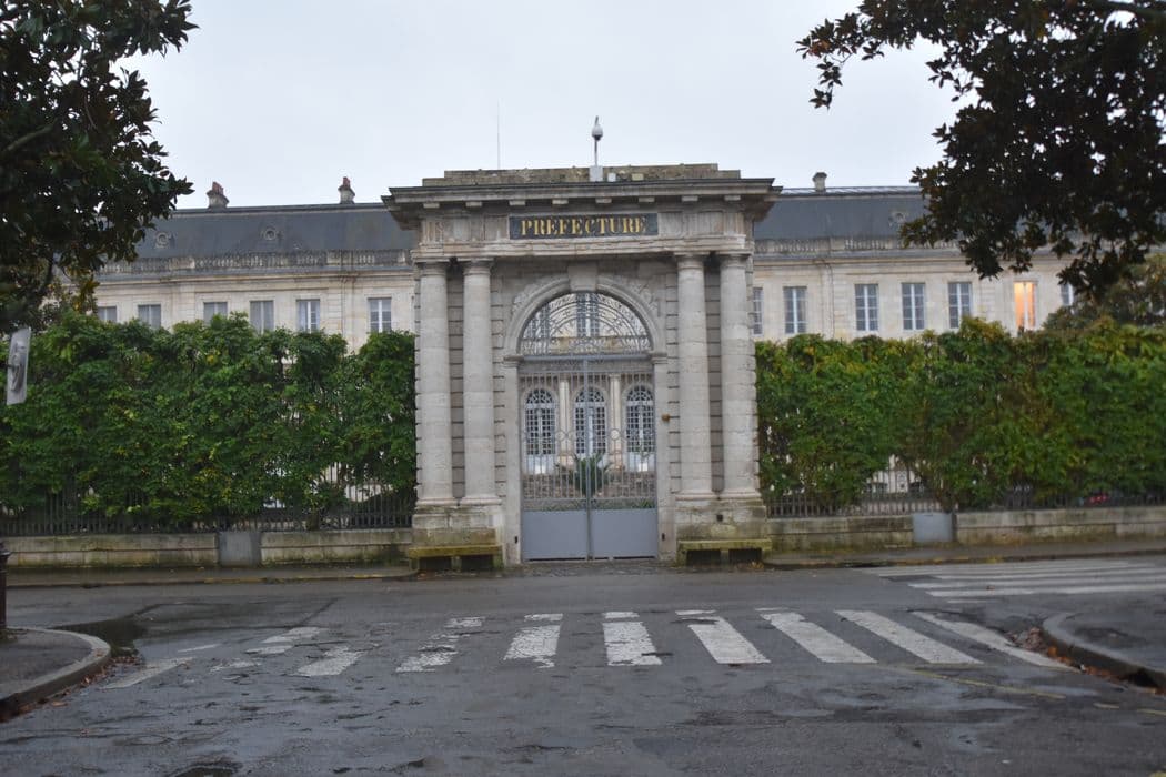 Edifice construit pour l'usage de Monseigneur Jean-Louis d'Usson de Bonnac, qui occupa le siège d'Agen de 1768 jusqu'à la Révolution. La demeure des évêques était, jusqu'alors, un bâtiment vétuste, situé près de la cathédrale, et qui s'écroula. Monseigneur de Bonnac décida de faire construire, hors de l'enceinte de la ville, un palais dont la première pierre fut posée en 1775. Les plans furent dressés par Leroy, élève de Soufflot. Du palais originel, ont disparu la balustrade qui courait le long de la toiture (démolie en 1809) et la toiture elle-même, détruite par un incendie, et remplacée par un comble à la Mansard vers 1910. Le motif central de la façade est constitué par quatre colonnes doriques supportant un balcon, dominé par un fronton sur lequel étaient figurées les armoiries des évêques, remplacées depuis par des motifs. A la suite de cette façade, à l'ouest et à l'est, se trouvent des ailes dans le même alignement. Les sous-sols sont entièrement voûtés. A la Révolution, l'évêque partit en exil en laissant l'intérieur inachevé. En 1809, s'y installe l'administration départementale qui fait construire des ailes en retour d'équerre autour de la cour d'honneur.