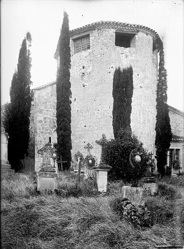 Construite au 12e siècle, l'abside semi-circulaire est précédée d'une courte travée voûtée en berceau, entre deux arcs doubleaux. Le sanctuaire est précédé d'un transept voûté sur croisée d'ogives. Sur les deux travées de la nef s'ouvrent une chapelle au nord et au sud. Il subsiste de l'édifice primitif les murs et les piliers, y compris leurs chapiteaux à trois rangées de feuilles superposées et à animaux fantastiques. Les contreforts sont modernes.