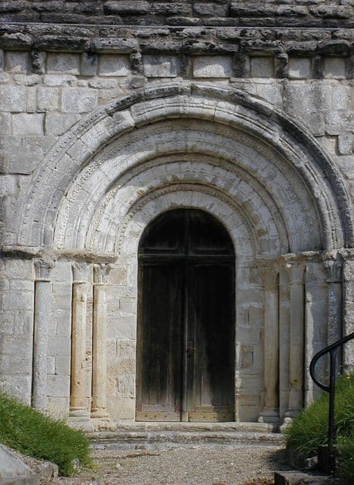 Le choeur est formé d'une abside demi-circulaire moins large que la travée de choeur qui la précède. Chaque fenêtre de choeur possède des colonnettes aux chapiteaux historiés (chute d'Adam et Eve ; adoration des mages...). L'édifice a perdu ses voûtes dont il ne reste que les retombées. La porte s'ouvre au sud dans la travée basse de la nef. Six colonnettes logées dans les retraits des piédroits soutiennent les archivoltes moulurées. L'ornementation du portail est riche. Le clocher s'élevait au-dessus de la travée carrée qui était voûtée d'ogives.