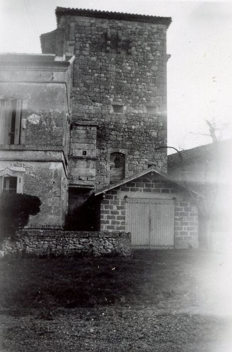 Cette tour est le seul vestige du château de Laugnac. Sur la face ouest, une tourelle carrée en encorbellement a été ajoutée au 15e siècle, percée de trou pour arquebuse, et trois meurtrières. Les faces nord et est comportent aussi des corbeaux et des meurtrières. A l'intérieur, escalier à vis et cheminée en pierre du 15e siècle.