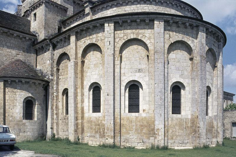 Vaste édifice élevé par les Bénédictins à la fin du 11e siècle. Il se compose d'une large nef voûtée en berceau, d'un transept dont la croisée est voûtée en coupole octogonale, et d'une abside demi-circulaire ajourée par sept fenêtres ornées de colonnettes. Sur les deux bras du transept s'ouvrent deux absidioles orientées et voûtées en cul de four. Les murs sont renforcés à l'intérieur et à l'extérieur par des dosserets et des arcatures, et ne se défendent que par leur grande épaisseur. Le portail occidental s'ouvre par une surépaisseur de maçonnerie qui permet le libre développement des voussures. La nef, qui avait subi des déformations, a été en partie refaite suivant les anciennes dispositions. La coupole a été décorée de peintures et surmontée d'un dôme en ardoise et d'un campanile.