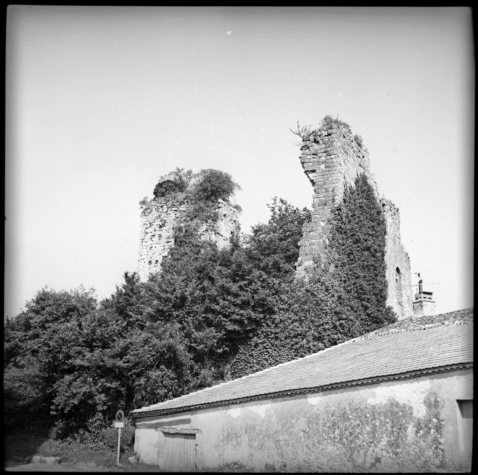 A la fin du 13e siècle, le seigneur rendait hommage au roi d'Angleterre. La forteresse comprenait un mur d'enceinte polygonal enserrant le village, dont les murailles avaient une épaisseur de 1, 50m et une hauteur de 8 à 10 mètres. L'ensemble des vestiges subsistants remonte vraisemblablement à la fin du 12e ou au début du 13e siècle. Ils comrpennent un fragment important du donjon avec l'arrachement de son escalier à vis, ainsi que deux salles voûtées superposées, et un pan de mur de l'ancien corps de logis comportant les traces de deux étages avec leurs fenêtres autrefois géminées.