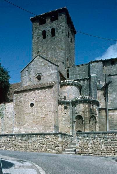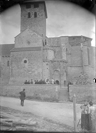 L'église a vraisemblablement été élevée dans la seconde moitié du 12e siècle, mais elle a ensuite subi plusieurs modifications. L'une d'elles consiste en la reconstruction du choeur au 14e siècle. L'édifice se compose d'une nef principale avec deux bas-côtés, d'un transept peu développé et d'un choeur à pans coupés flanqué de deux absidioles. Sous le transept et le sanctuaire se trouve une crypte. Les grandes arcades qui s'ouvrent sur les bas-côtés reposent sur des colonnes aux chapiteaux sculptés (animaux à têtes humaines, sirènes, oiseaux...). Le carré du transept est délimité par quatre piliers cruciformes flanqués de colonnes engagées aux chapiteaux également sculptés (oiseaux adossés, animaux fantastiques...). Cette travée est voûtée d'une coupole sur pendentifs, dont la base est légèrement ovale. L'abside romane fut remplacée, au 16e siècle, par un choeur plus vaste. La crypte, suite à l'exhaussement du carré du transept et du sanctuaire, n'est pas souterraine. Au-dessus des combles se trouve une salle fortifiée dont les meurtrières rondes furent appropriées à l'usage des armes à feu. Cette transformation pourrait dater du 16e siècle. Au-dessus du carré du transept s'élève le clocher, tour carrée massive, crénelée à son sommet.