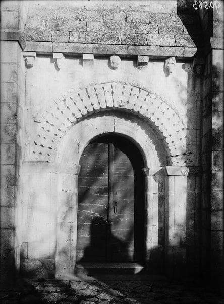 L'église, dont la construction semble remonter au 11e siècle, ne possède plus actuellement qu'une nef unique, la croisée et le croisillon du transept et un choeur à chevet plat. Le choeur et le croisillon sont voûtés d'ogives ; la nef est couverte d'un plafond de bois. L'arc triomphal du choeur, aujourd'hui tombé, retombait sur des colonnes engagées surmontées de chapiteaux sculptés. La chapelle située sur la façade nord, au droit de l'ancien choeur, date du 15e siècle. Le monument est précédé d'un clocher arcade couvert d'un toit dont la saillie est maintenue par des liens de soutien établis aux angles. Au bas du clocher, et donnant accès à l'intérieur, est percé un portail comprenant deux rouleaux d'arcs plein cintre présentant une décoration de rosaces et de palmettes.