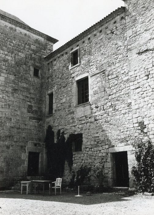 Différentes époques se succèdent dans ces bâtiments qui entourent complètement une cour rectangulaire ouverte, vers l'est, par une porte piétonne et une grande porte cochère dont l'arc et les lucarneaux des bâtiments sont appareillés en briques. Une partie non aménagée conserve, à l'intérieur, des archères qui devaient défendre le petit plateau. Des percées Renaissance, bouchées, sont encore apparentes sur la façade de la cour. Dans l'angle sud-ouest s'élève le donjon qui contient un escalier rampe sur rampe à deux volées. Une petite échauguette s'accroche au sommet de la tour.