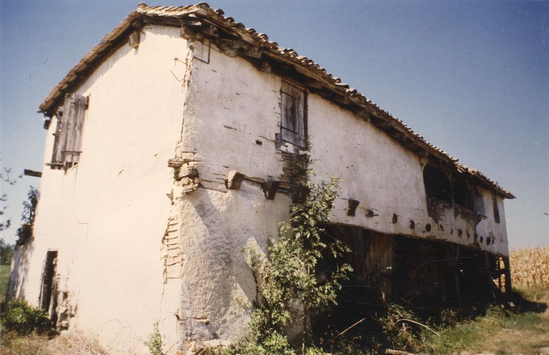 Intérêt ethnologique de ce type de constructions, mises en oeuvre sur une période s'étendant du 14e au 17e siècle. Maison associant la technique à empilage de madriers avec la construction à colombages. L'édifice rectangulaire comprend un rez-de-chaussée et un étage carré entourés, sur les quatre côtés, de galeries. Le rez-de-chaussée en empilage de madriers, assemblés aux angles à mi-bois et reposant sur des blocs de silex, a été construit seul, comme l'indique les traces de la cheminée condamnée par la construction de l'étage. Ce dernier est à pans de bois et torchis. Les galeries sont portées par de gros poteaux posés sur des blocs de silex.