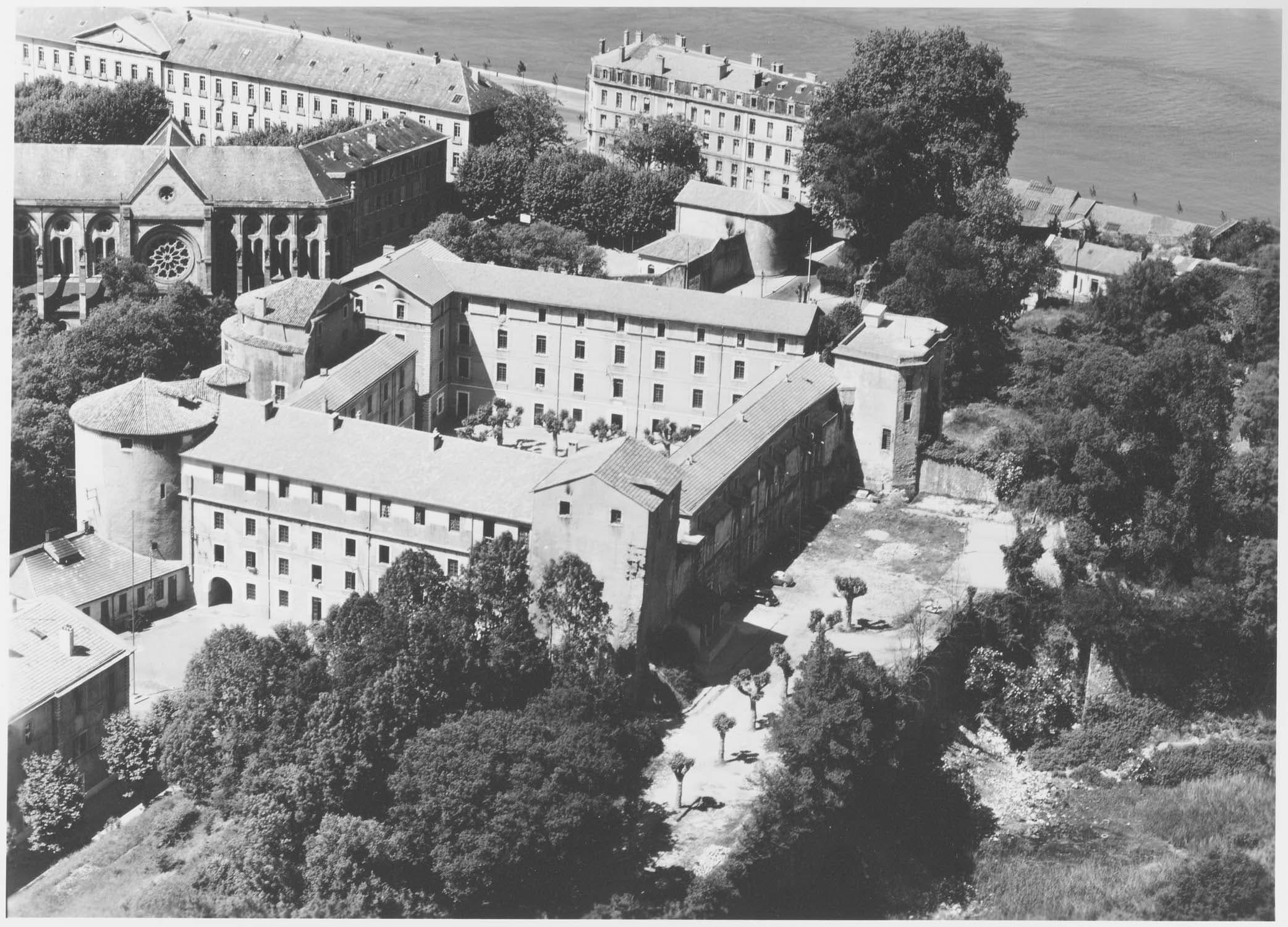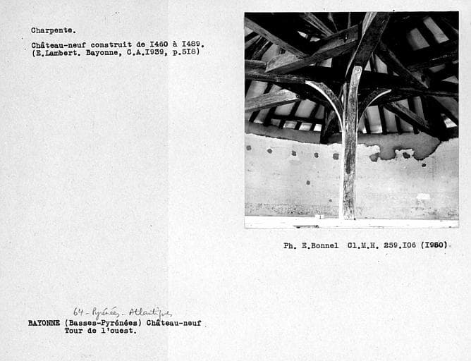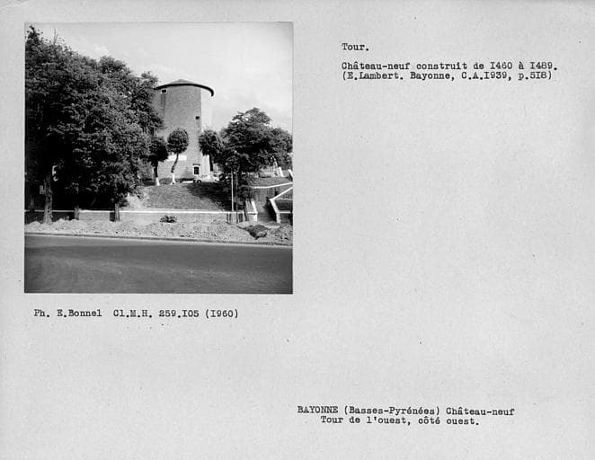 Au début du 12e siècle, Bayonne connut, grâce à ses franchises communales, un essor économique et démographique qui nécessita l'urbanisation des basses terres de la rive gauche de la Nive et de l'Adour. Après la guerre de Cent ans, les Français ayant repris la ville en 1451 décidèrent d'améliorer le système défensif de la cité en construisant le château neuf, adossé à l'enceinte anglaise du début du 14e siècle. Le château permettait de faire face aux menaces espagnoles ou anglaises et de prévenir toute velléité de révolte des Bayonnais, comme celle des Bordelais en 1453. En 1462, s'élevaient les deux tours rondes faisant face au bourg neuf. Au 16e siècle, la rivalité entre la France et la maison d'Autriche ainsi que par les guerres de Religion, les fortifications furent transformées pour répondre au progrès de l'artillerie. Le rempart de François Ier fut élevé en avant de la muraille gallo-romaine. En 1520, le château neuf fut renforcé. Au cours de la guerre de Hollande (1672-1678), Colbert entreprit de faire consolider les fortifications. En 1680, Vauban fut envoyé à Bayonne. Il augmenta la capacité de casernement du château neuf et en fit murer les fenêtres basses. Un fossé fut aménagé alentour. Le château neuf conserva cette fonction de casernement jusqu'à sa désaffection par l'Armée dans les années 1980. ££Le château est un ensemble défensif quadrangulaire comportant, au sud-ouest, une tour ronde datant des années 1460, avec ses deux courtines attenantes. Au sud-est se trouve la tour carrée, dite également "tour Mocoron" ayant appartenu à l'enceinte urbaine anglaise. Au nord-est, à l'extrémité de la courtine crénelée au 17e siècle et surhaussée par la suite, s'élève le portail de Mocoron. Cette ancienne porte de ville du 14e siècle comprend deux tours polygonales encadrant une porte surmontée d'un arc brisé. Cette porte fut englobée dans le château neuf dès la seconde moitié du 15e sècle. Au nord subsiste la courtine anglaise. La tour en quart de cercle servit de cachot. Au sud de la tour carrée nord-ouest s'élève une tour oblongue bâtie vers 1462. Une tourelle d'escalier lui est accolée au nord. Une courtine du 15e siècle joint la tour oblongue à la tour ronde du sud-est. Adossés à ces vestiges médiévaux s'élèvent des bâtiments de casernement datant du 19e siècle.