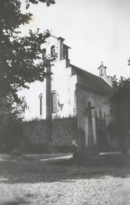 Eglise comprenant un choeur roman voûté en cul de four qui aboutit, sous l'arc triomphal, à deux colonnes engagées que somme un chapiteau à décor géométrique. Les bras du transept, gothiques, ont été fortement restaurés au 19e siècle, de même que la nef. Le portail sud est encadré d'un décor du 16e siècle, protégé par un porche en appentis porté par un pilier décoré d'un blason et au fond duquel s'ouvre une porte en anse de panier.